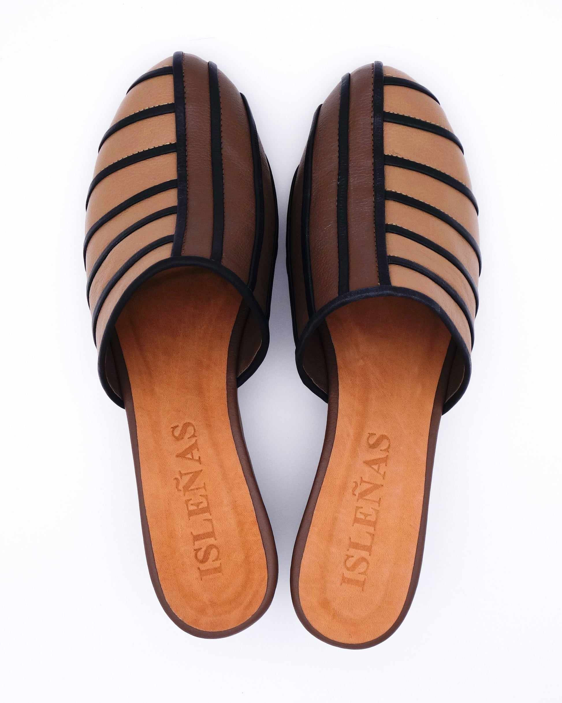 The Alia Mule is the sister style to the Amara Slide in wedge version. We used the same patchwork technique we apply on the Off Grid styles but this time played with lines, direction, and color. The Alia Mule is a minimal and visually interesting wedge that we consider to be the most versatile style from this drop. She can elevate a casual look, she can take you to work or she can carry a day to night look.