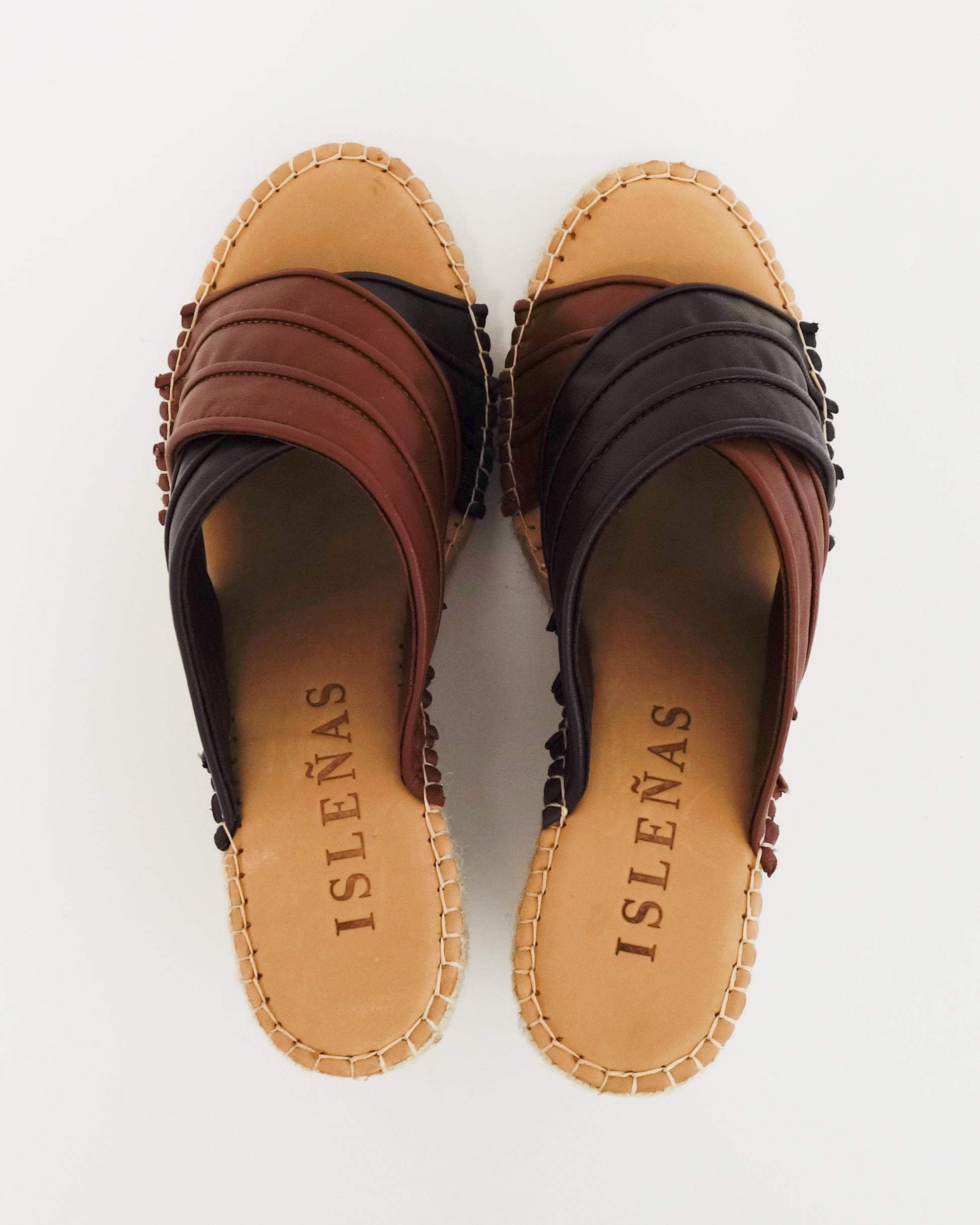 We welcome the Criss Cross Wedge to the Isleñas family. This variation features the Criss Cross upper pattern on a 3 inch / 8 cm wedge sole. It's easy, stylish, and comfy. Slip on a bit of height and wear this two-tone magenta and burgundy combination from day to night.