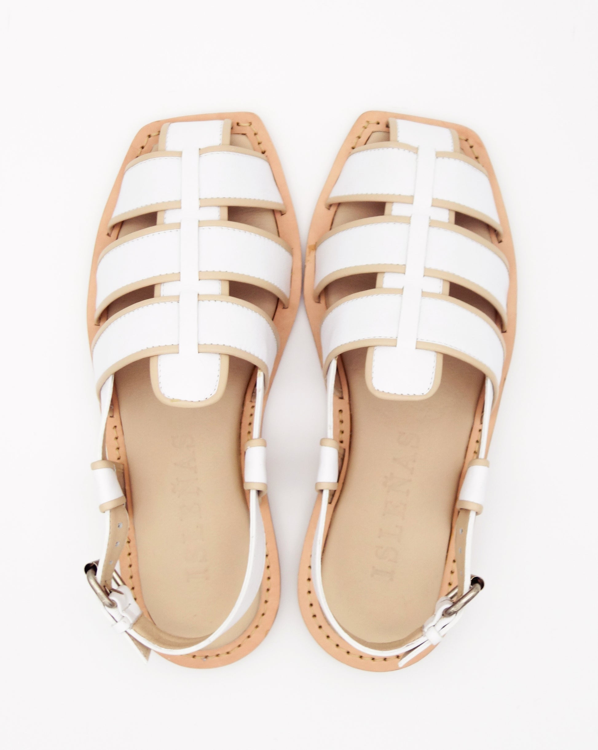 For our own version of the Isleñas Signature Fisherman we used a 'welt-like' leather detail around the sole and finished the edges of the upper leather straps with french piping for a more elegant look.