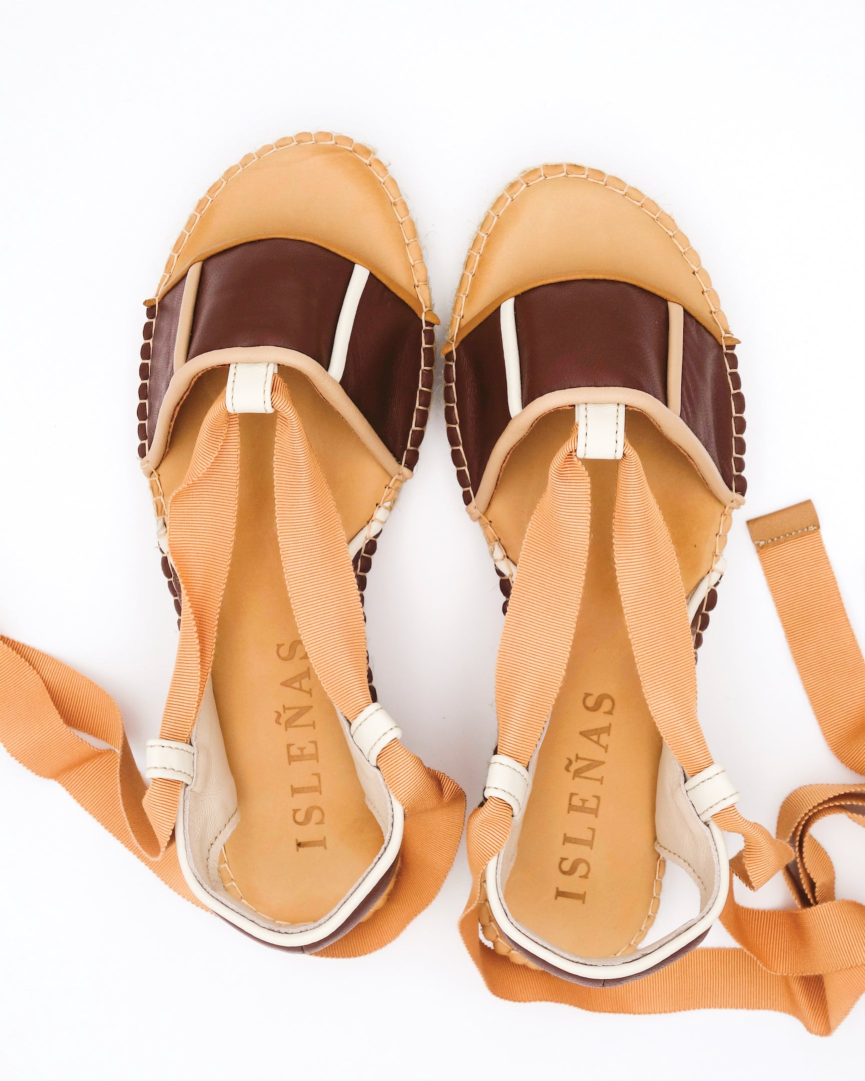 Mixing our Isleñas signature identity with classic styles, the Off Grid Sandal Ties features a single grided patchwork toe strap with classic espadrille ties around the ankle.