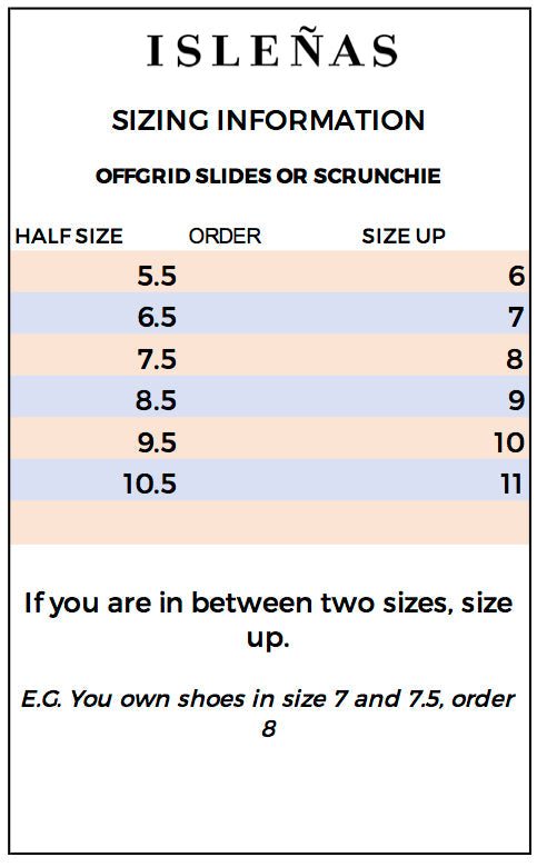 If you are in between sizes, we recommend sizing up. (E.G. If you are 6.5 your Isleñas size is 7. See size chart for reference.