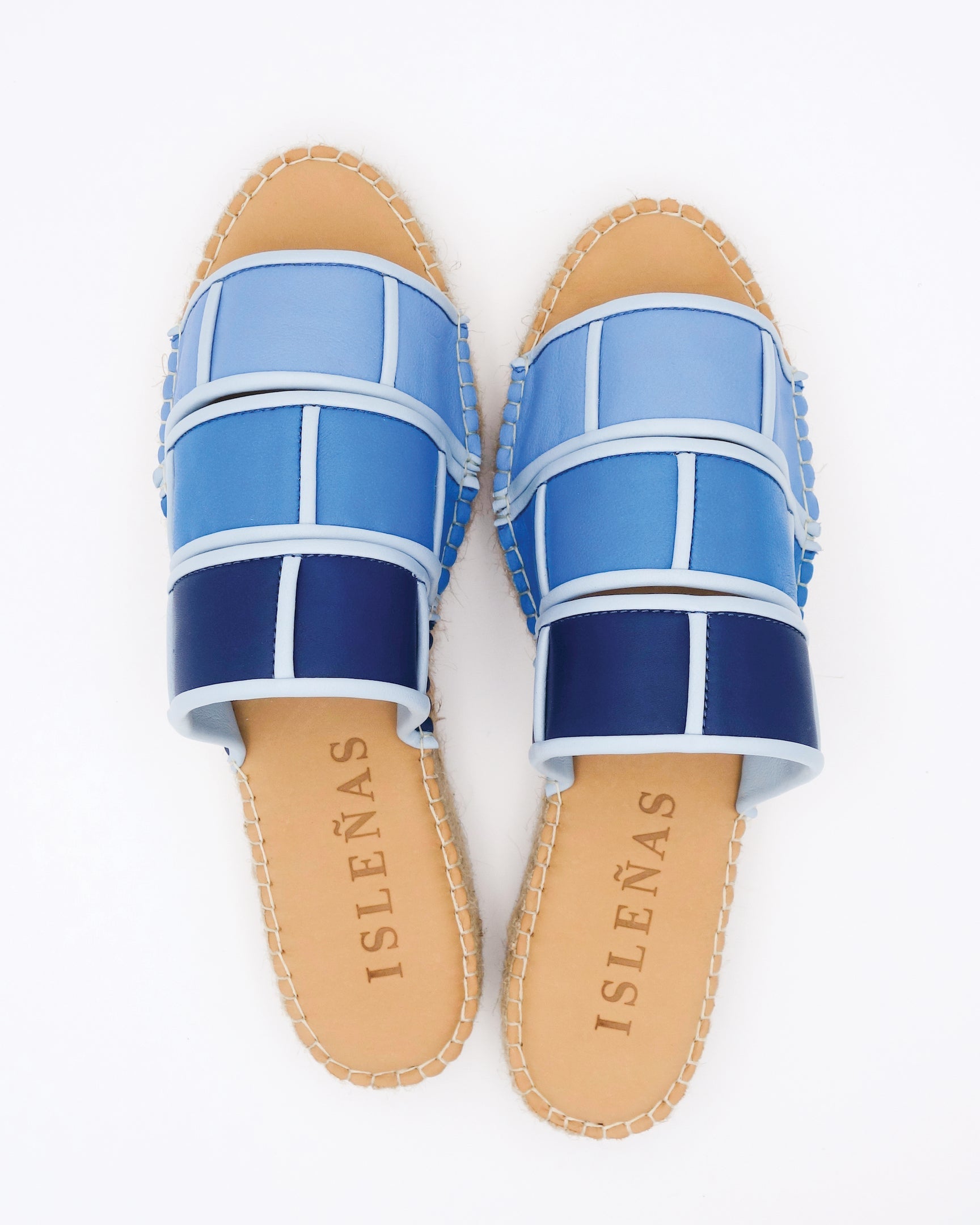 The Off Grid slide is our first style and best seller. This version of Blues up has a blue gradient from toes to instep. Inspired by that moment in the day were clear blue skies merge with the sea.